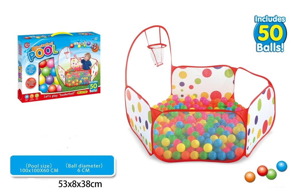 Platneni bazen za bebe i decu u setu sa 50 plastičnih loptica i košem.