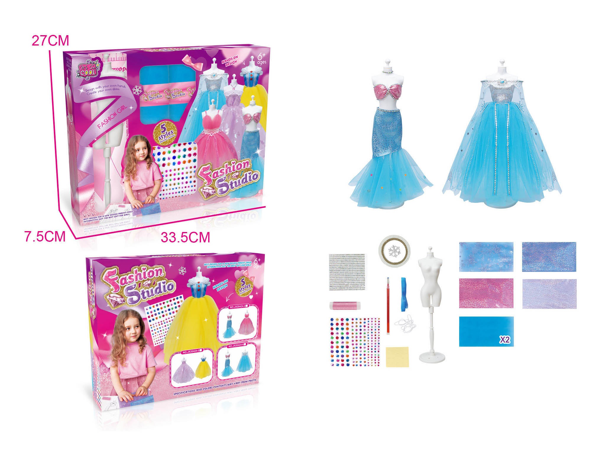 Kreativni set postani dizajner sadrži materijal, alat za izradu garderobe i dodatne elemente za ukrašavanje.