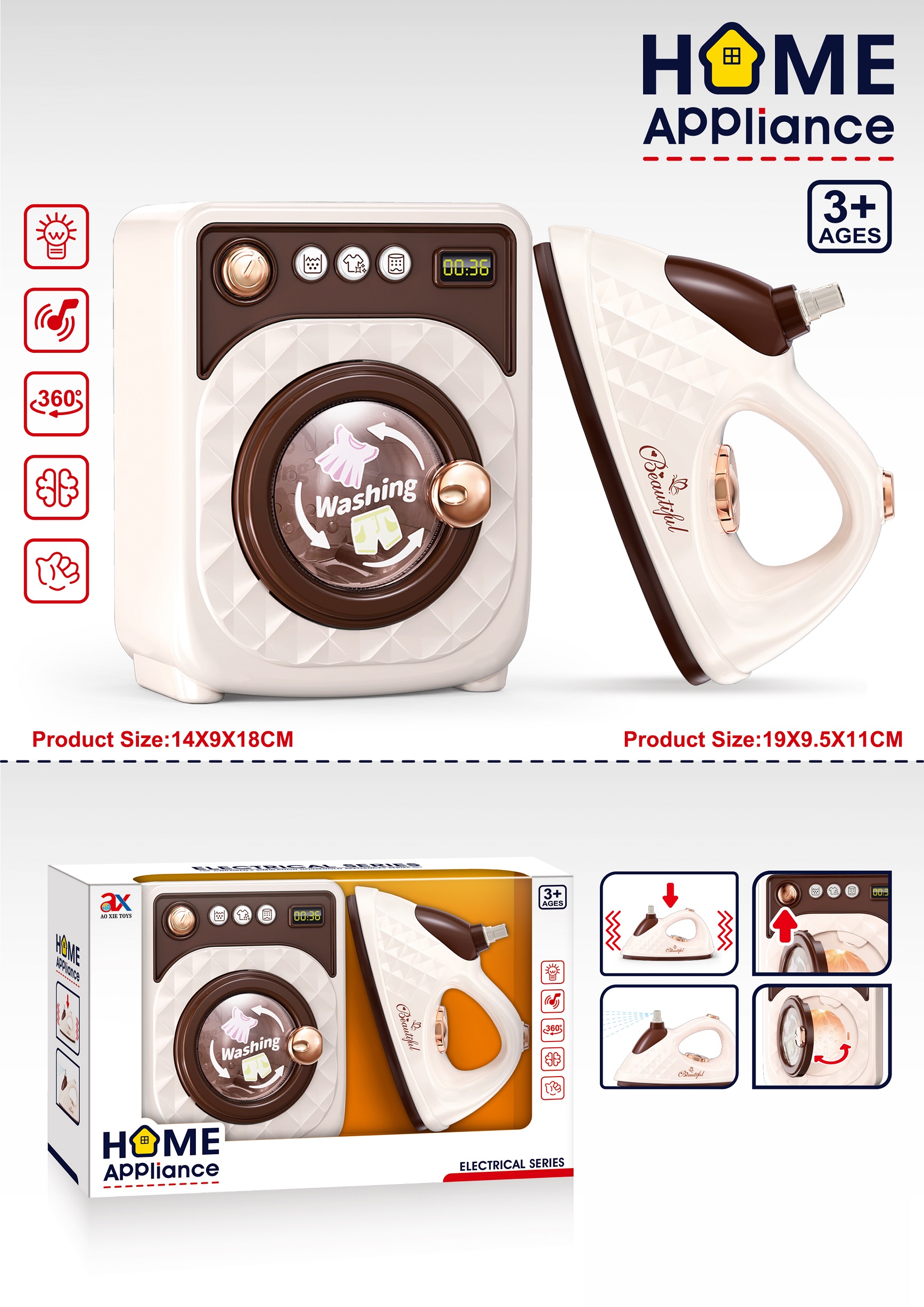 Mašina za veš i pegla sa zvukom i svetlom. Igračke koje simuliraju rad pravih aparata.